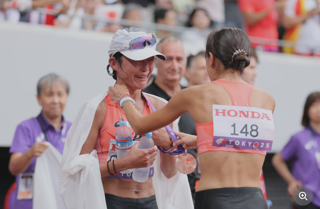 2025东京田径世锦赛于当地时间20日进入到大赛第8日的较量。在以国立竞技场为起点和终点的路线上展开争夺的女子20公里竞走项目中,藤井菜菜子获得了铜牌。她以1小时26分18秒的成绩刷新了日本纪录,这也是日本女子竞走选手首次登上世锦赛领奖台。比赛结束后,她与第18个冲过终点的冈田久美子之间出现了感人一幕。